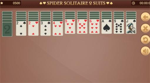 Diese Version von Spider Solitaire ist vollständig für das Spielen mit zwei Farben angepasst, da der Spieler mehr Platz hat, um lange Kartenspalten zu bilden.
