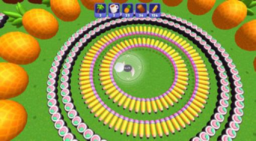 Bewege die rotierenden Messer über das Spielfeld, schneide verschiedene Obstsorten, steigere deine Kraft und räume das gesamte Spielfeld leer.
