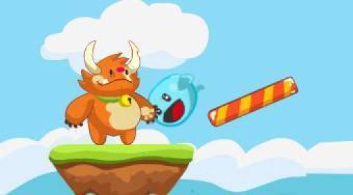 Bouncy and Monsto - Entfernen Sie Gegenstände aus Holz aus dem Spielbrett, so dass der blaue Kreatur könnte, um seine gehörnte Freund zu bekommen.
